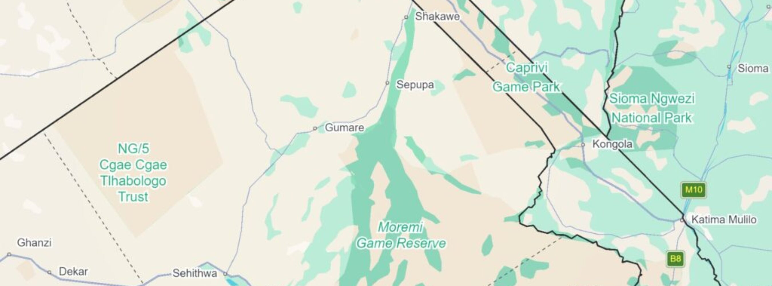 Farm tæt på grænsen til Namibia Det østligste Ngamiland, tæt på grænsen til Namibia, byder på et sjældent møde mellem rå vildmark, kulturel autenticitet og storslået natur. Området ligger nær både Qangwa og den namibiske Khaudum National Park, et af regionens mest uberørte naturreservater, hvor dyr frit krydser grænsen mellem de to lande. Landskabet er præget af skovområder, åbne sletter og de karakteristiske tørre flodsænkninger, også kendt som omiramba — brede, sandfyldte fordybninger, som kun fører vand efter kraftig regn og resten af året fungerer som naturlige ruter gennem den tætte bush. Khaudum‑området er særligt kendt for sin rige koncentration af elefanter og sjældne arter som roanantilope og afrikanske vildhunde, der trives i den vidtstrakte, uspolerede vildmark. Kombinationen af dyreliv, ægte afsideshed og minimal infrastruktur gør området attraktivt for investorer og købere, der søger et eksklusivt, naturnært og helt unikt miljø